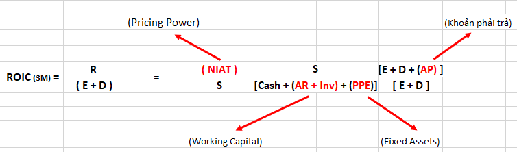 + ROIC - Returns on Invested Capital - Tỷ suất sinh lợi ROIC - Doanh nghiệp có MOATS là DN có khả năng tạo ra Lợi nhuận sau thuế trên vốn đầu tư cao (Đã, đang, và sẽ):