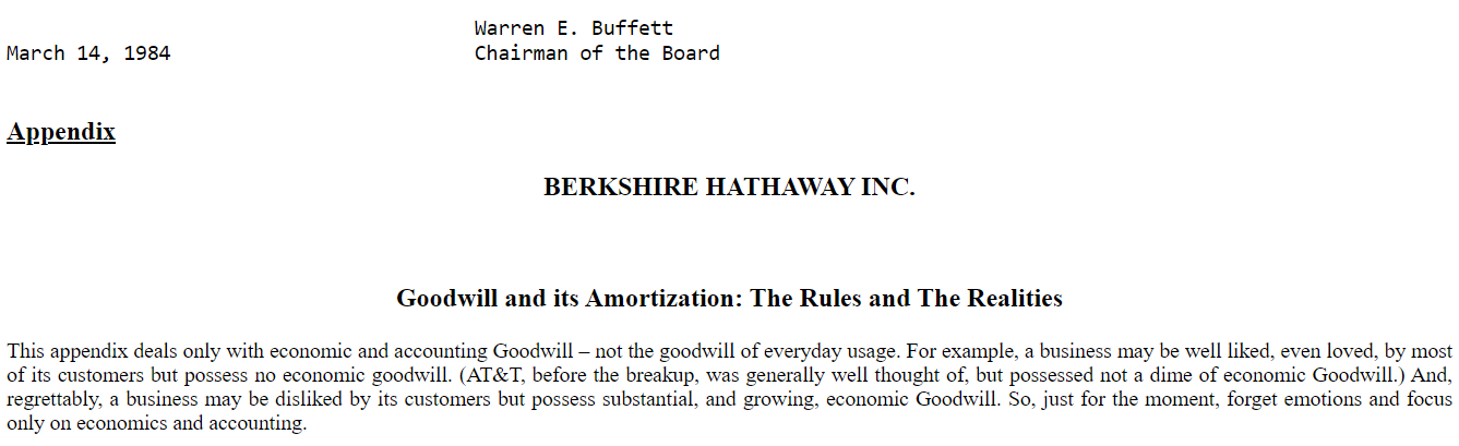 Trong thư gửi cổ đông năm 1993, Buffett đã nói về việc này, ông nói rằng: " Những yếu tố này có thể sẽ khiến nhiều nhà phân tích cảm thấy không thể chịu nổi vì mơ hồ, vì chúng không thể được trích xuất ra từ bất kỳ cơ sở dữ liệu nào. Nhưng, khó khăn trong việc định lượng chính xác những vấn đề này không phủ nhận tầm quan trọng của nó cũng như không thể bỏ qua được. Như Justice Stewart nhận thấy rằng dù không thể công thức hóa việc kiểm tra xem như thế nào là khiêu dâm, nhưng ông khẳng định " Tôi sẽ biết khi tôi thấy nó " - Just as Justice Stewart found it impossible to formulate a test for obscenity but nevertheless asserted, "I know it when I see it "