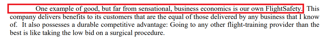 The Good - Loại Tốt ( FlightSafety ): Loại mô hình kinh doanh có thể tạo ra mức tỷ suất sinh lợi vừa trên vốn chủ đầu tư, tức mức ROIC vừa phải, cao hơn so với lợi suất gửi tiết kiệm, lợi nhuận sau thuế muốn tăng trưởng (additional earnings) thì phải cần thêm một ít vốn mới rót vào (additional capital), tỷ suất sinh lợi ROIC mang lại trên vốn mới thêm cũng vừa phải cao hơn so với gửi tiết kiệm .