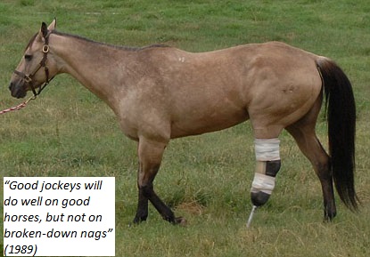 Bởi vì, một kỵ sĩ què cưỡi trên lưng một con ngựa giỏi có thể về đích trong dài hạn, nhưng một kỹ sĩ giỏi cưỡi trên lưng một con ngựa què sẽ khó có thể về đích trong dài hạn.