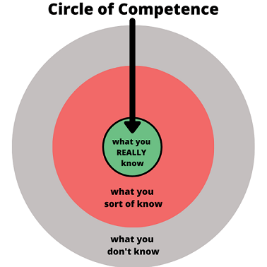 Phải biết rõ bản thân mình biết gì và không biết gì, nếu bạn hiểu rõ ngành sản xuất hãy tập trung vào ngành sản xuất, nếu bạn hiểu rõ ngành bảo hiểm hãy tập trung vào ngành bảo hiểm, nếu bạn hiểu rõ ngành ngân hàng hãy tập trung vào ngành ngân hàng. Nôm na như Buffett hay nói là phải hiểu rõ ranh giới Vòng tròn hiểu biết (Circle of Competence) của chính mình , Buffett nói rằng có rất nhiều người không biết gì về doanh nghiệp X nào đó nhưng lại nghĩ là biết, điều đó rất nguy hiểm trong đầu tư Investing ( There is nothing wrong with a 'know nothing' investor who realizes it, the problem is when you are a 'know nothing investor' but you think you know something ), Buffett còn nói thêm rằng " Bạn không cần phải hiểu về hàng ngàn doanh nghiệp, chỉ cần vài doanh nghiệp trong Vòng tròn hiểu biết thôi là đủ "