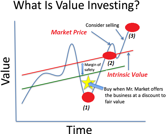 Nhà đầu tư giá trị là những người đi tìm những doanh nghiệp tuyệt vời (A Wonderful Company), cố gắng định Giá trị nội tại Intrinsic Value của các doanh nghiệp đó, kiên nhẫn chờ đợi và chỉ mua vào khi nào Market Price được giao dịch dưới Intrinsic Value tạo ra Margin of Safety.