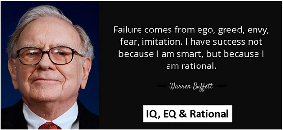 Còn Warren Buffett thì nói về mối quan hệ giữa kiểm soát bản thân và đầu tư là: " If you can not control your emotion, you can not control your money - Nếu không thể kiểm soát cảm xúc, bạn sẽ không thể kiểm soát được tiền của mình "