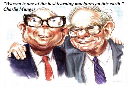 Trong một bài phát biểu năm 2007 tại USC Law School, Charlie Munger đã nói Berkshire Hathaway sở dĩ phát triển vượt bậc như hôm nay hoàn toàn là nhờ vào cỗ máy học hỏi Warren Buffett. Buffett là một cỗ máy học hỏi không ngừng nghỉ, kể từ lần đầu tiên đầu tư lúc 11 tuổi, ông đã gần như tự học về tất cả các ngành nghề và nghiên cứu tất cả các doanh nghiệp trong nền kinh tế Mỹ. Ông luôn sẵn sàng học hỏi những điều mới trong tất cả các lĩnh vực, đặc biệt trong lĩnh vực kinh doanh đầu tư và con người, cùng với Charlie Munger cũng là một cỗ máy học hỏi, cả hai ông đã nghiên cứu và đầu tư trong hơn 80 năm, sở hữu và vận hành hàng ngàn mô hình kinh doanh khác nhau, hầu như hai ông đã nghiên cứu hết tất cả các công đang niêm yết ở Mỹ. Đó là lý do tại sao các CEO hàng đầu của Mỹ ( Bill Gates, Jeff Bezos, Jack Welch, ... ) đều phải nghiêng mình kính trọng trước sự hiểu biết về rất nhiều ngành nghề từ ngân hàng, bảo hiểm, sản xuất, tài chính, công nghiệp, bán lẻ, dược phẩm, khai khoáng,.... của Warren Buffett và Charlie Munger
